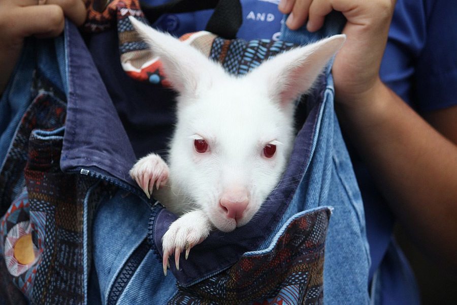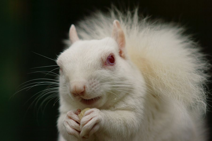 Albino’s zijn dieren die geen pigmenten meer produceren dus ook niet meer in hun ogen. De oogjes van albino’s zijn rood maar hoe bekomt men dit rood kleurtje in de ogen? Wel deze kleur verkrijgt men door de bloedvaten die aanwezig zijn in het oog. Deze kleuren de ogen rood.