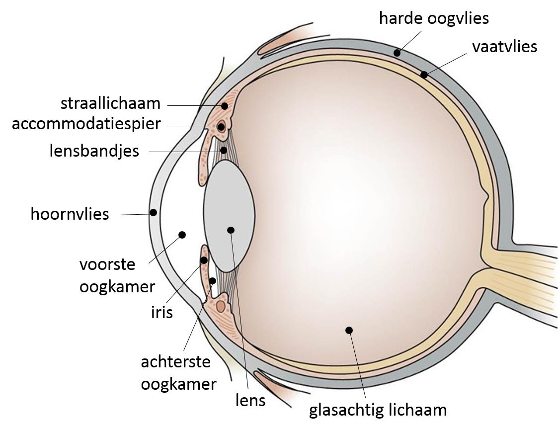 | M | Straallichaam | Lichaam dat via de lensbandjes verbonden is aan de lens en deze op zijn plaats houdt. Het bevat ook de accommodatiespier die een rol heeft in het scherp stellen van de lens. |