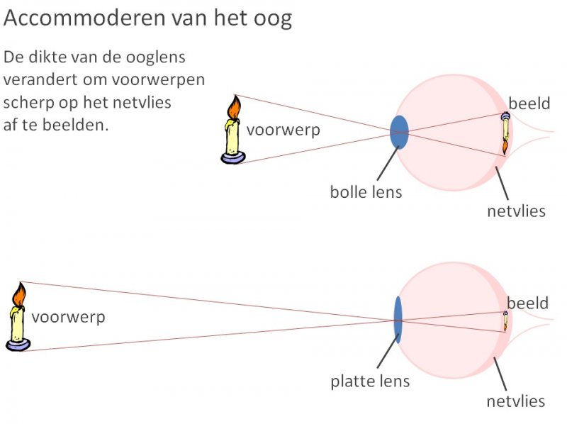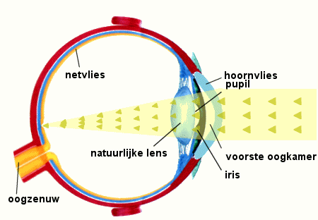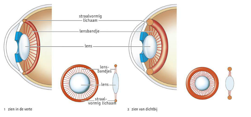 Om zowel dichtbij als veraf scherp te kunnen zien, heeft het oog twee lenzen nodig: de buitenste en de binnenste lens. De buitenste lens bestaat uit het hoornvlies en de oogkamer.