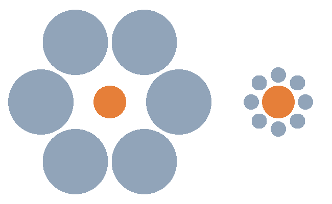 Welke van de twee oranje cirkels is het grootst?